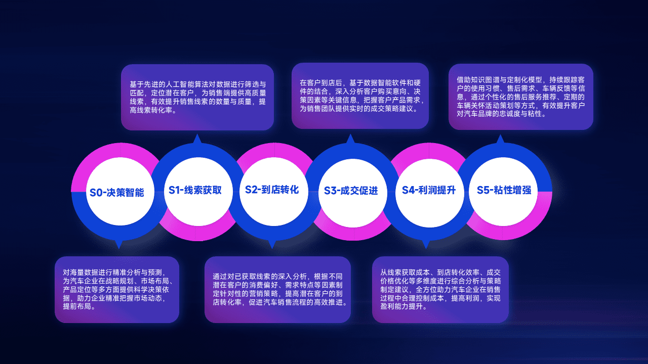通过拓宽潜在客户来源、、、、优化线索分配并提高到店转化率,,以增强销售效率。。。。同时,,,利用线索数据不断优化分析模型,,,有效提升转化率,,,扩大营销影响力。。